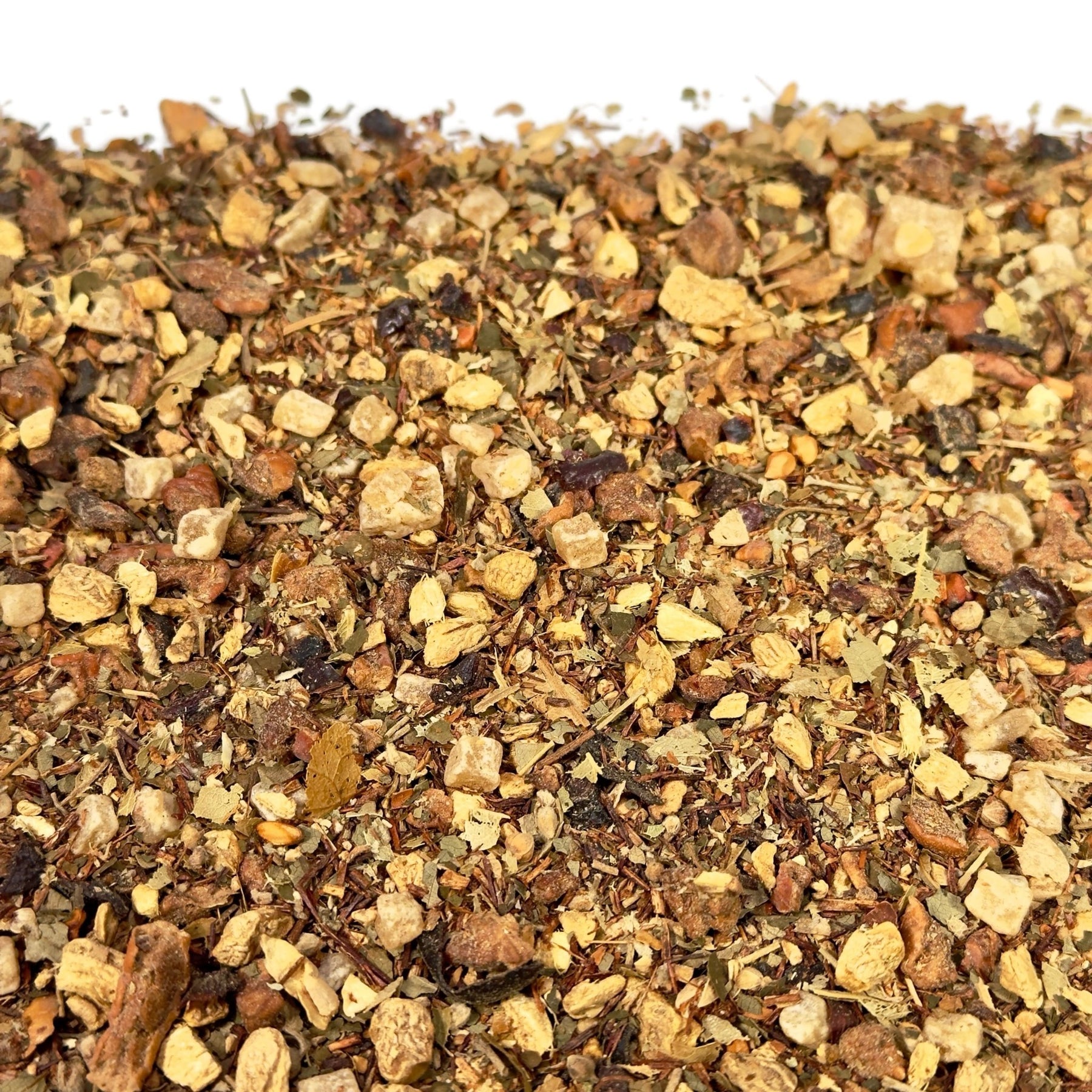 Ingwer verleiht der Teesorte eine unverwechselbare, würzige Schärfe, die für ein intensives und belebendes Geschmackserlebnis sorgt. Seine aromatischen Noten harmonieren perfekt mit fruchtigen und kräuterigen Zutaten und schaffen so ein komplexes und ausgewogenes Aromaprofil. Durch seine natürliche Wärme und Tiefe wird Ingwer in Teemischungen oft verwendet, um ein wohliges und zugleich erfrischendes Geschmackserlebnis zu erzeugen.
