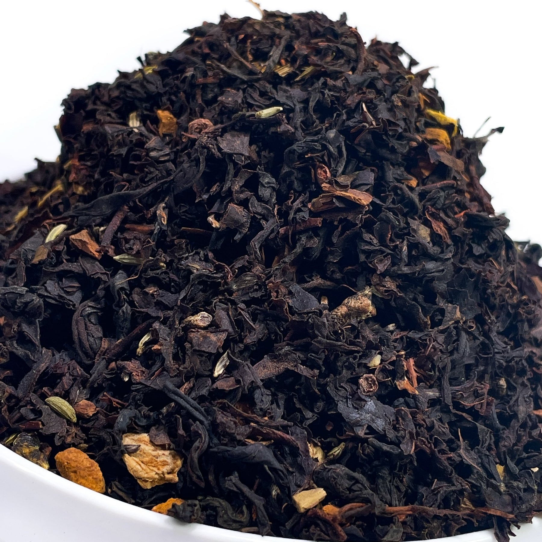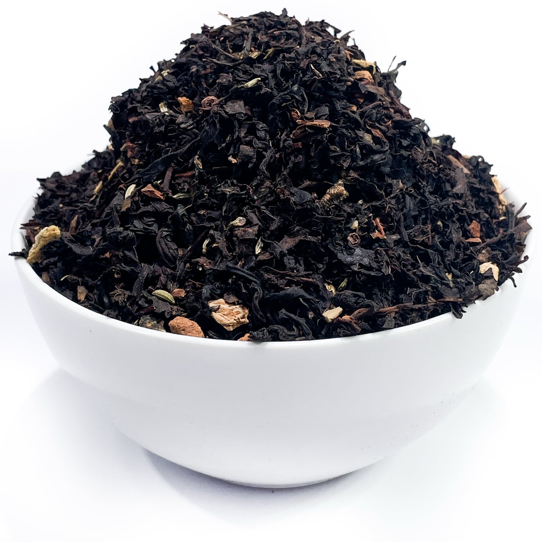 Im Mittelpunkt dieser Kreation steht hochwertiger Schwarztee. Sein kräftiges, vollmundiges Aroma bildet das Fundament und sorgt für eine angenehme Tiefe im Geschmack. Die dunklen, malzigen Noten harmonieren perfekt mit den hinzugefügten Gewürzen und schaffen ein rundes Geschmackserlebnis.