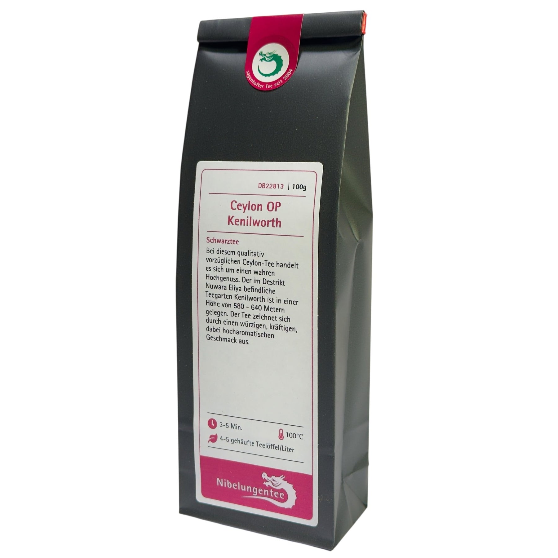 Bei diesem qualitativ vorzüglichen Ceylon-Tee handelt es sich um einen wahren Hochgenuss. Der im Destrikt Nuwara Eliya befindliche Teegarten Kenilworth ist in einer Höhe von 580 - 640 Metern gelegen. Der Tee zeichnet sich durch einen würzigen, kräftigen, dabei hocharomatischen Geschmack aus.