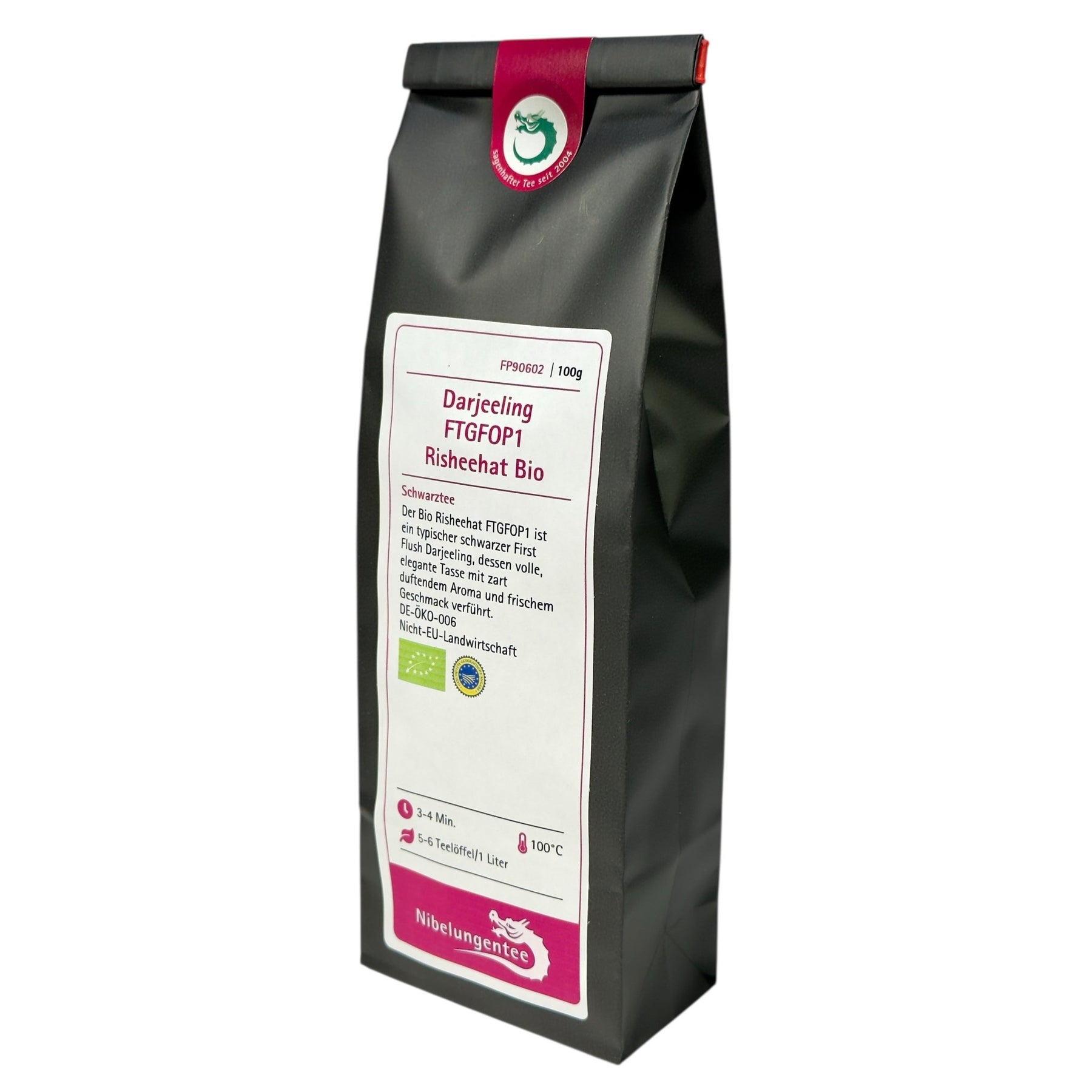 Der Bio Risheehat FTGFOP1 ist ein typischer schwarzer First Flush Darjeeling, dessen volle, elegante Tasse mit zart duftendem Aroma und frischem Geschmack verführt.