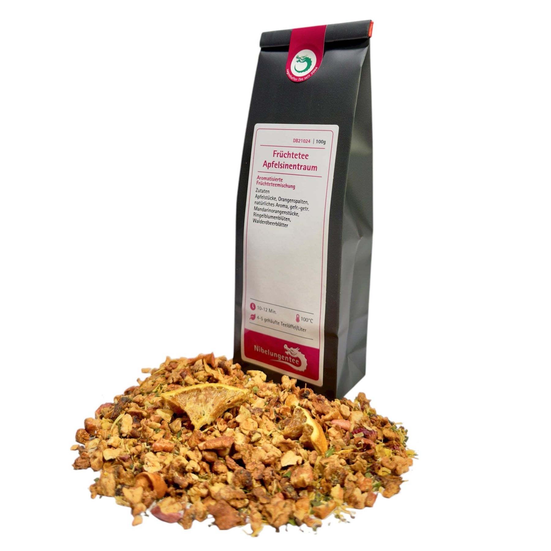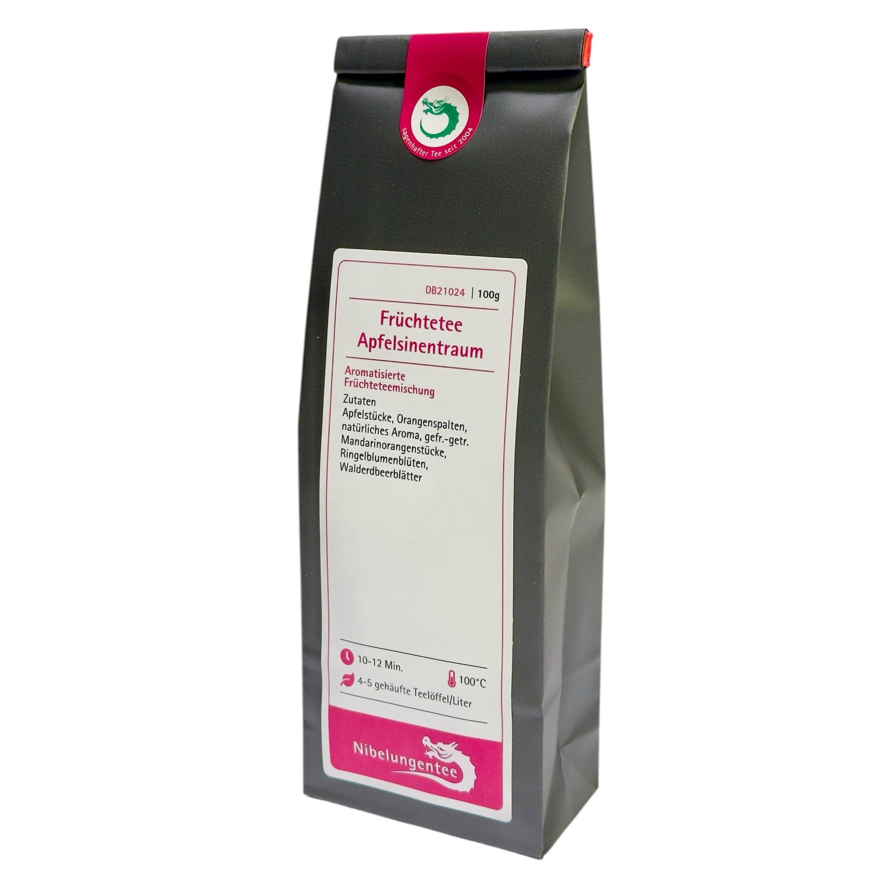 Was diesen Früchtetee so besonders macht, ist die Kombination aus süßlicher Apfelnote und dem spritzigen Geschmack sonniger Orangen. Der Apfel bringt eine milde, runde Basis, während die Apfelsine eine lebendige, fast schon prickelnde Frische beisteuert. Abgerundet wird das Ganze durch weitere feine Zutaten, die sich harmonisch dazugesellen und dem Tee eine angenehm ausgewogene Tiefe verleihen.