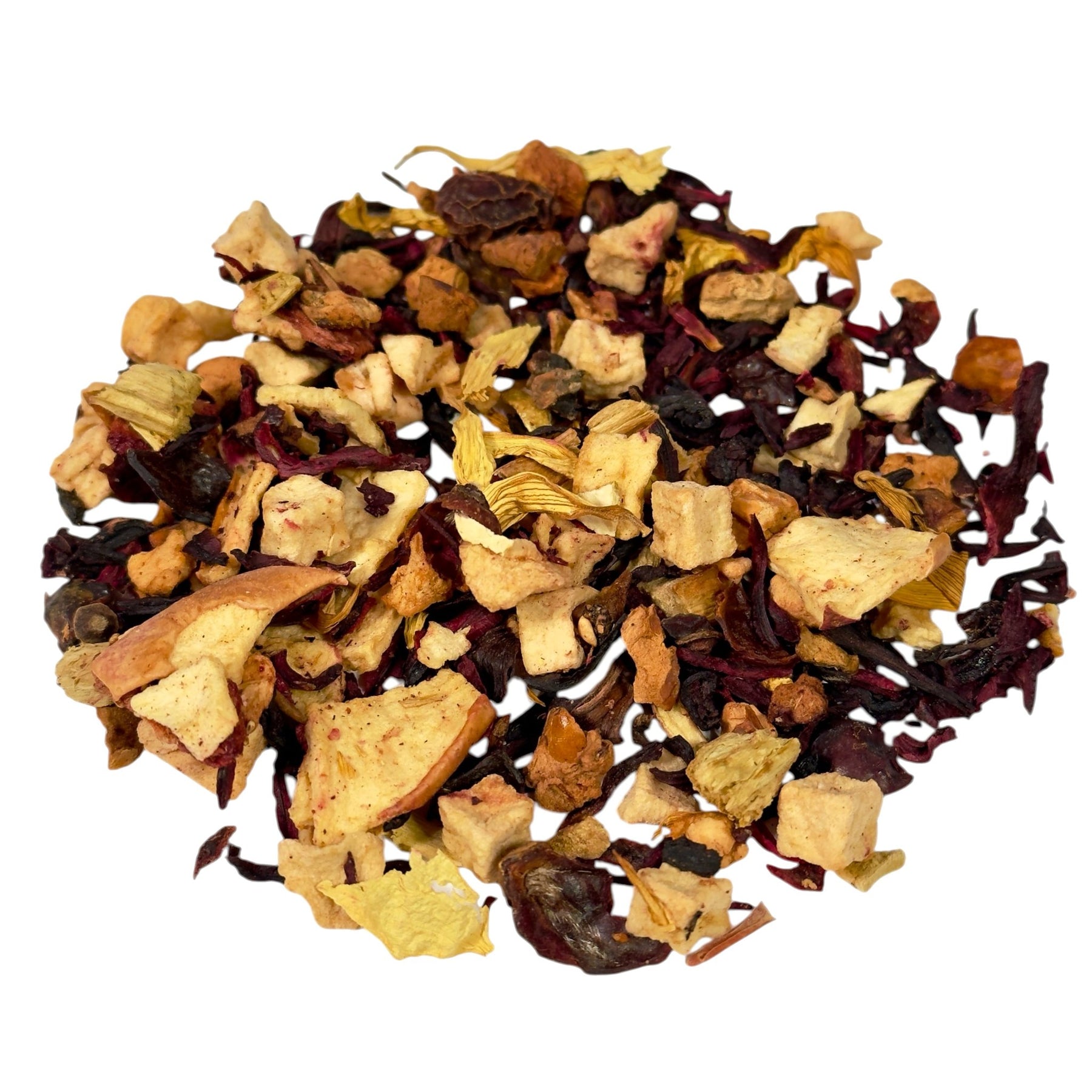 Apfelstücke bereichern das Getränk mit einer milden, fruchtigen Note und einem Hauch natürlicher Süße. Sie verleihen dem Tee eine warme, einladende Geschmacksdimension, die sich ideal für gemütliche Momente eignet.