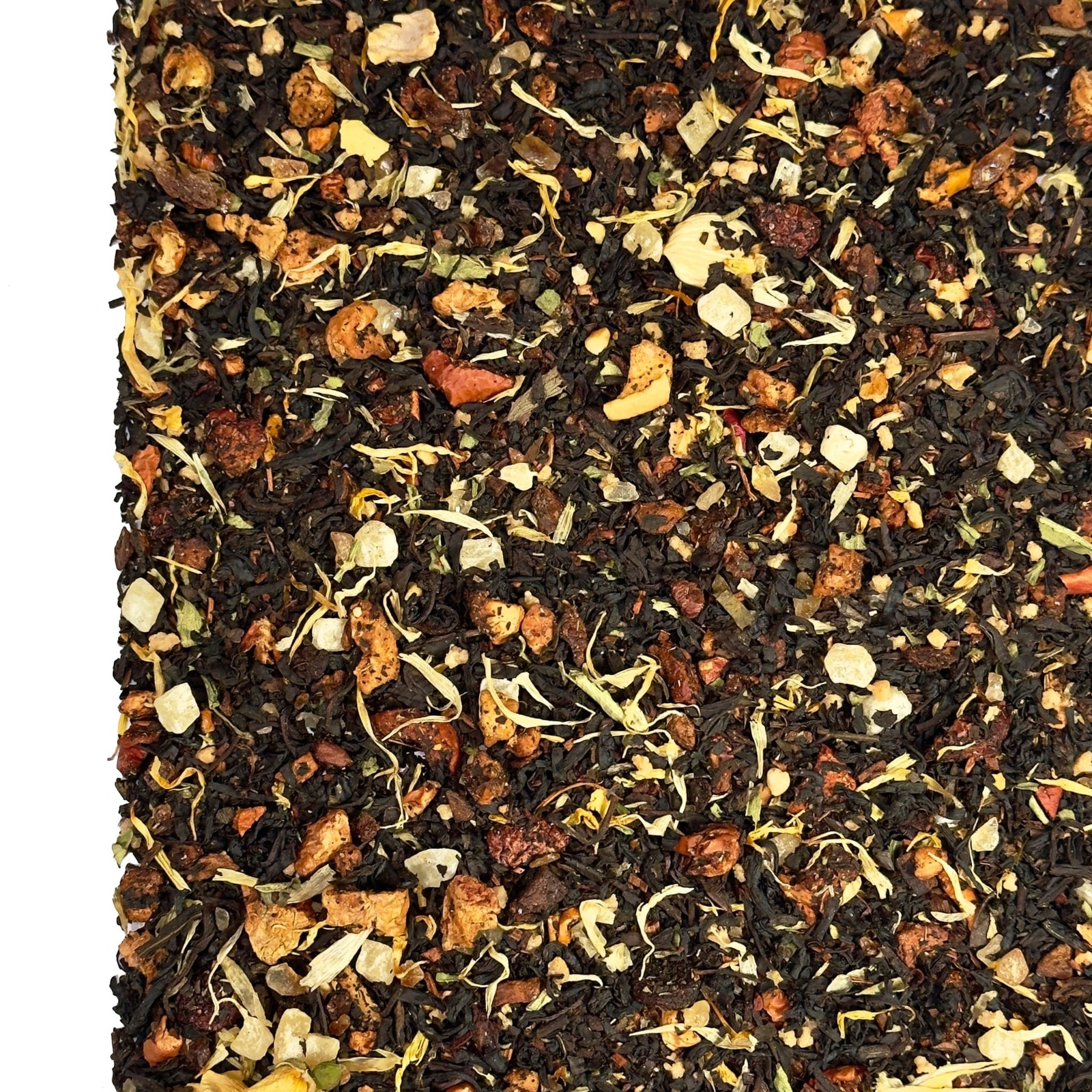 Honeybush bringt eine angenehm süßliche und leicht malzige Note in den Tee, die ihn wunderbar weich und rund macht. Sein mildes, honigähnliches Aroma sorgt für eine warme, einladende Geschmacksnote, die sich harmonisch mit den anderen Zutaten kombiniert. Honeybush eine natürliche Süße, die ihn ganz ohne Zusätze besonders harmonisch macht. Egal ob heiß oder kalt – er bleibt immer sanft und vollmundig im Geschmack.