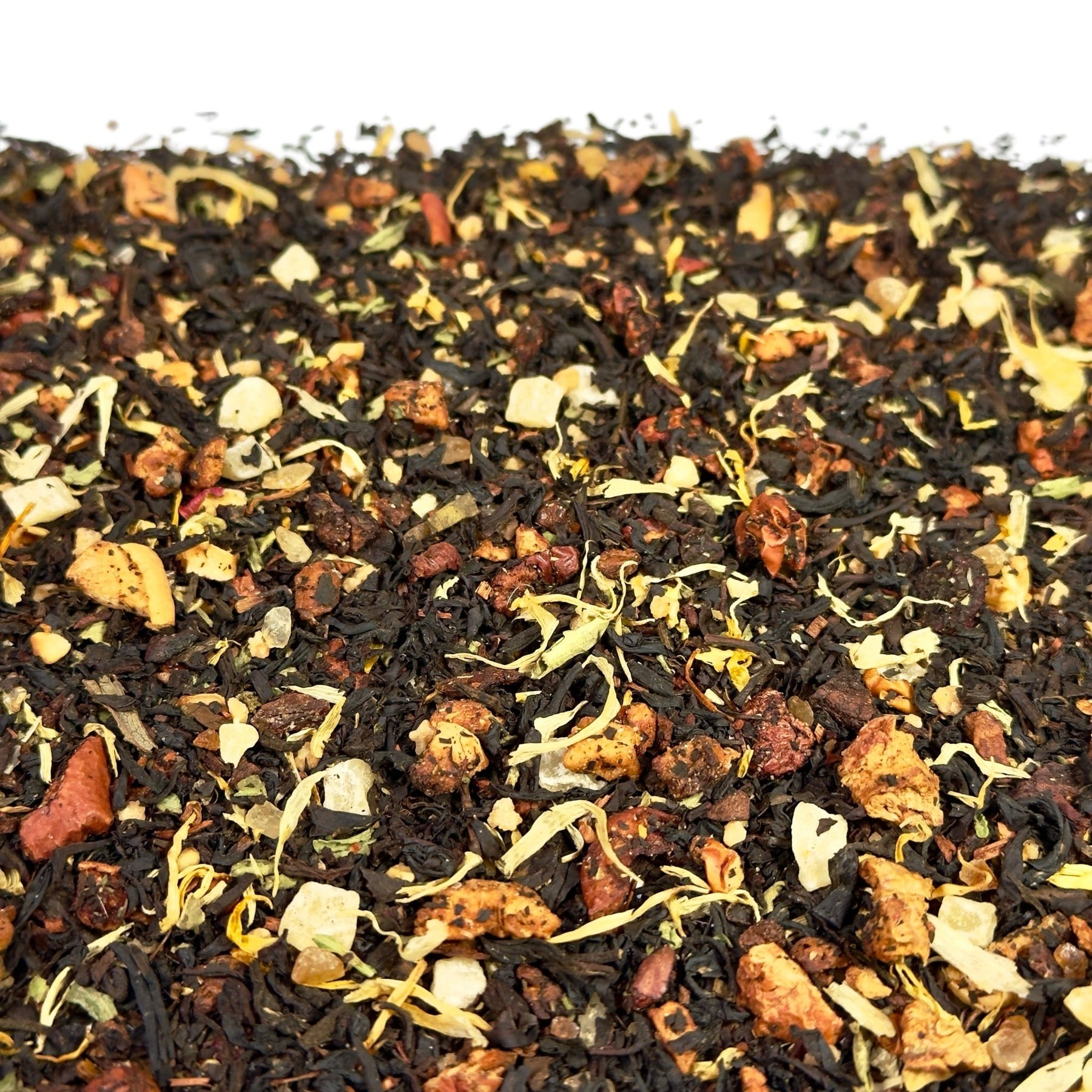 | Art: | Aromatisierter Schwarztee mit Fruchtstücken und Gewürzen |
