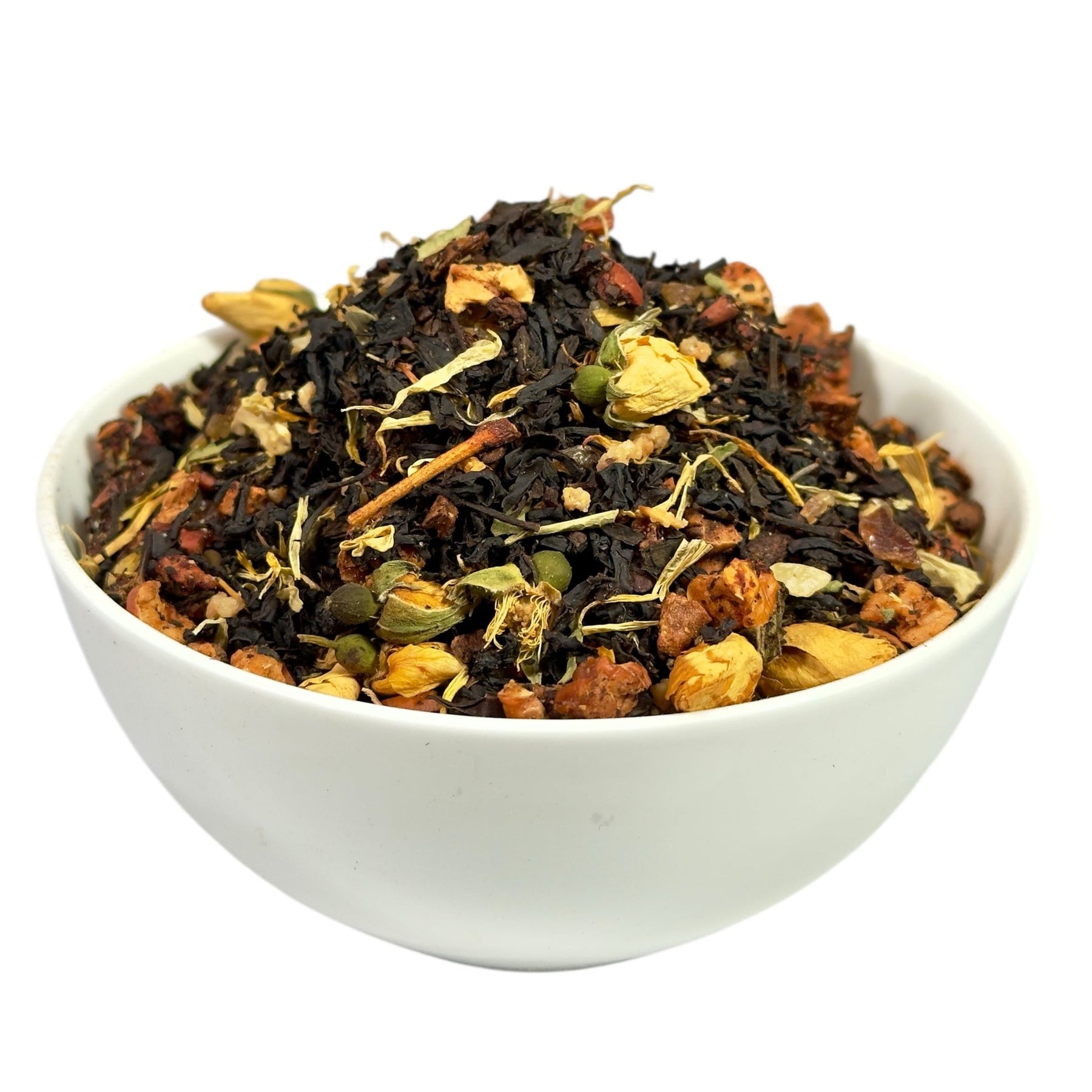 Maronen verleihen der Teesorte eine wunderbar nussige und leicht süßliche Note, die an gemütliche Herbsttage erinnert. Ihr mildes, erdiges Aroma sorgt für eine angenehme Tiefe und passt perfekt zu würzigen oder cremigen Teemischungen. Sie bringen eine warme, fast schon karamellige Nuance in die Tasse, die den Tee besonders harmonisch macht. Ob als kleine Überraschung im Tee oder als Hauptakteur – Maronen sorgen für eine köstliche, herbstliche Gemütlichkeit. Ideal für alle, die ihren Tee gerne mit einer besonderen, sanften Geschmacksnote genießen!