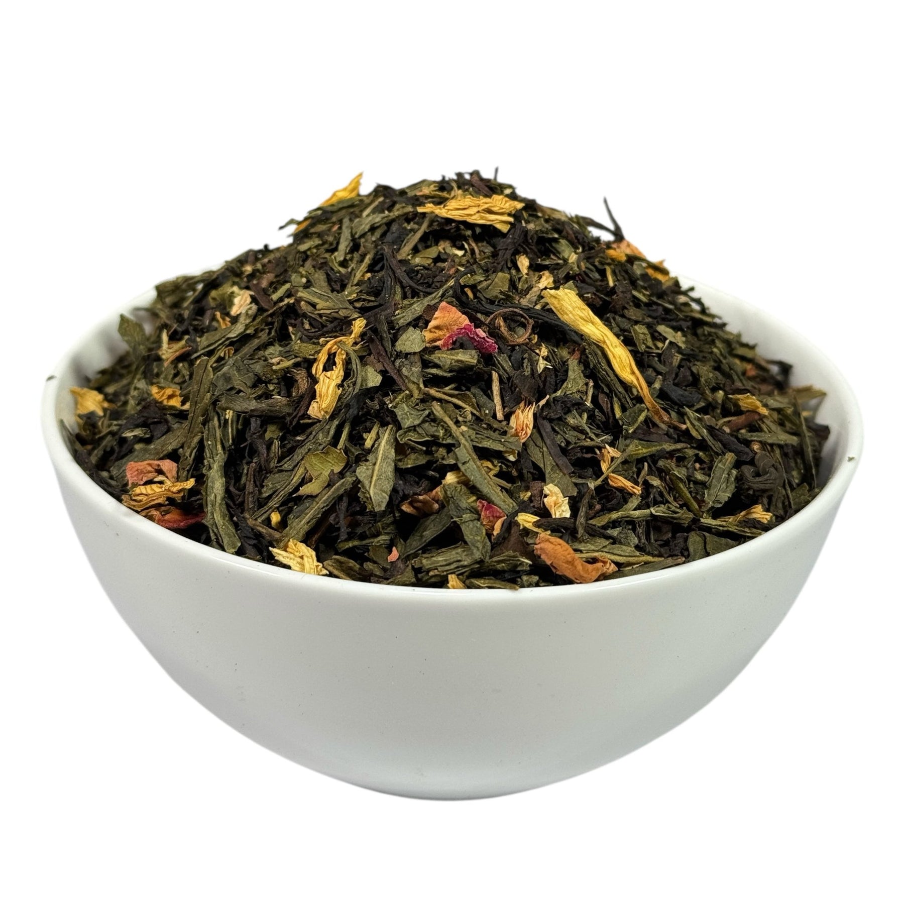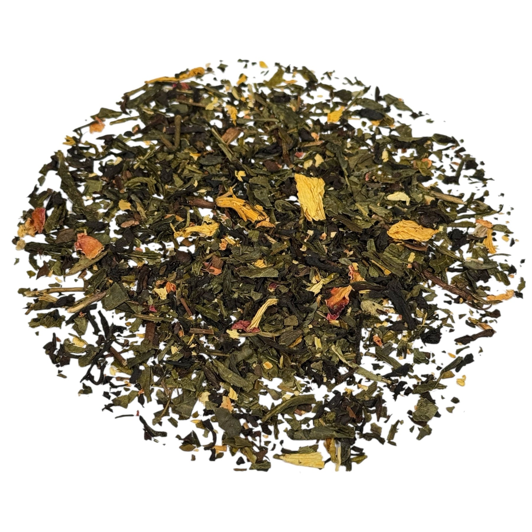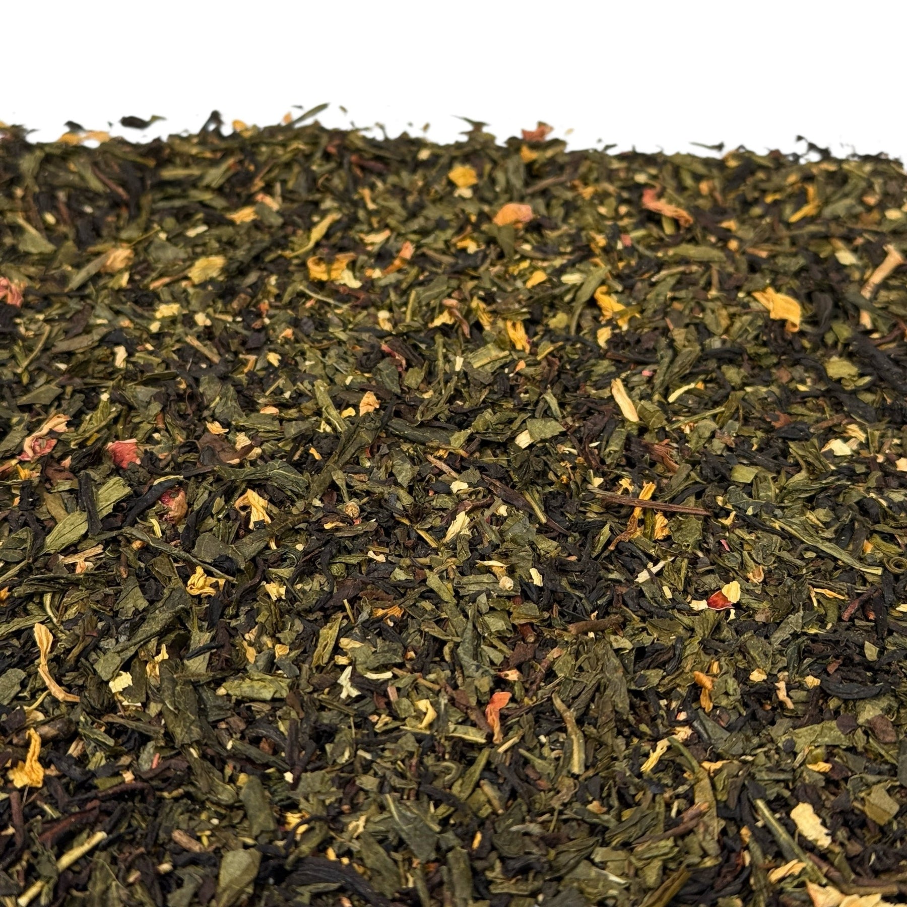 Art: Aromatisierte Grünteemischung mit schwarzem Tee