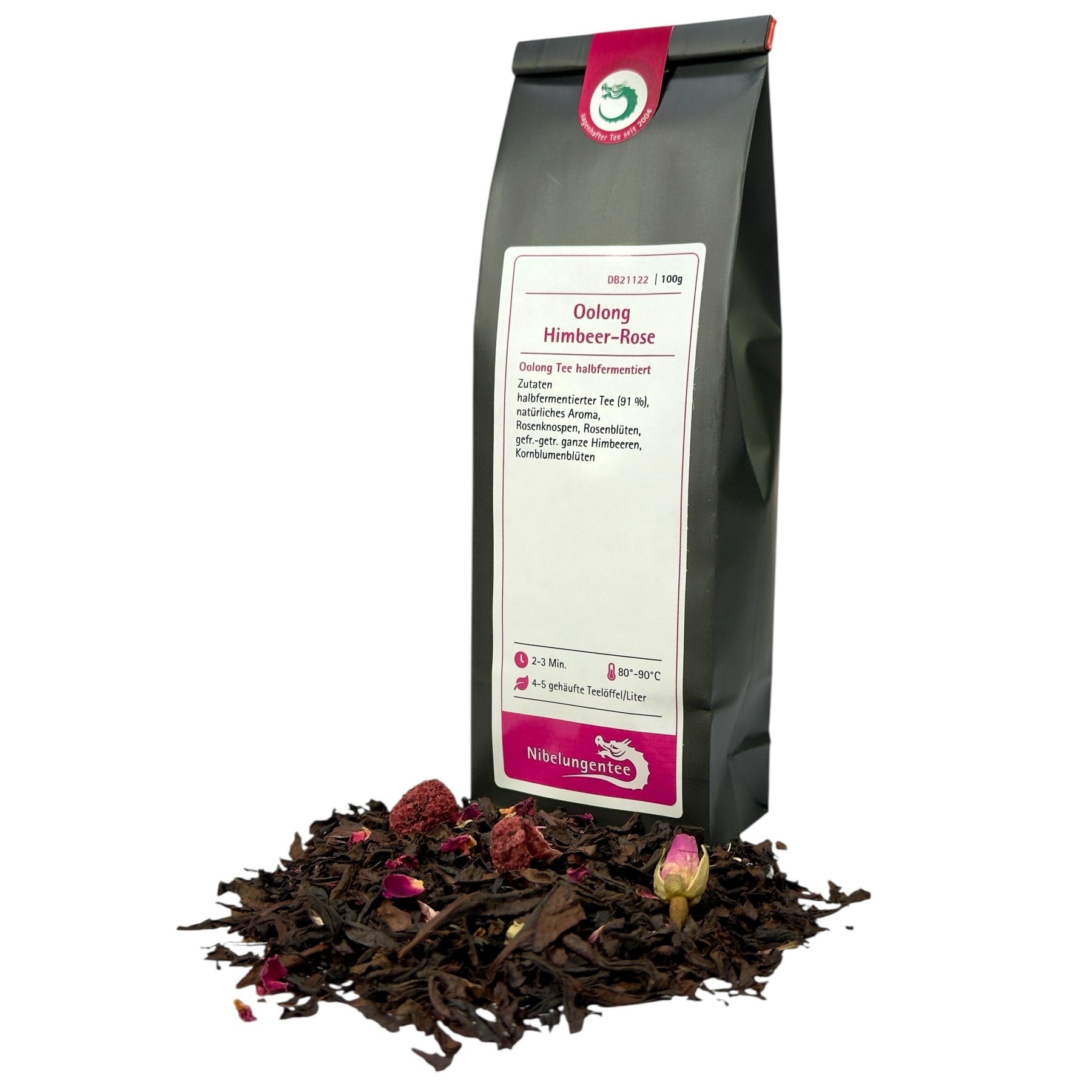 Oolong-Tees haben ihren Ursprung in China und Taiwan und zeichnen sich durch ihre einzigartige Herstellungsmethode aus, bei der die Blätter teils fermentiert und teils oxidiert werden. Dadurch entstehen Aromen, die sowohl die Frische eines Grünen Tees als auch die Tiefe eines Schwarzen Tees in sich tragen. Für die Teesorte wird eine sorgfältige Auswahl der besten Oolong-Blätter verwendet, die mit der fruchtigen Himbeere und der blumigen Rose zu einer köstlichen Kombination verarbeitet werden.