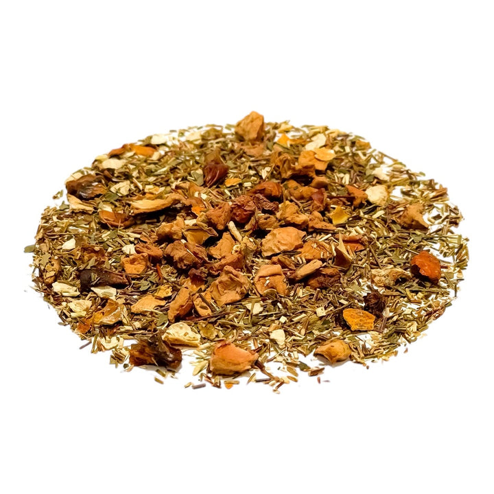 Rooibos, auch als Rotbuschtee bekannt, stammt aus den Zedernbergen Südafrikas. Seine nadelartigen Blätter werden fermentiert, wodurch der Tee seine charakteristische rötliche Farbe und den mild-süßlichen Geschmack erhält. Besonders geschätzt wird Rooibos für seine natürlichen Vorzüge: Er ist von Natur aus koffeinfrei und enthält keine Bitterstoffe, was ihn zum idealen Begleiter für jede Tageszeit macht.