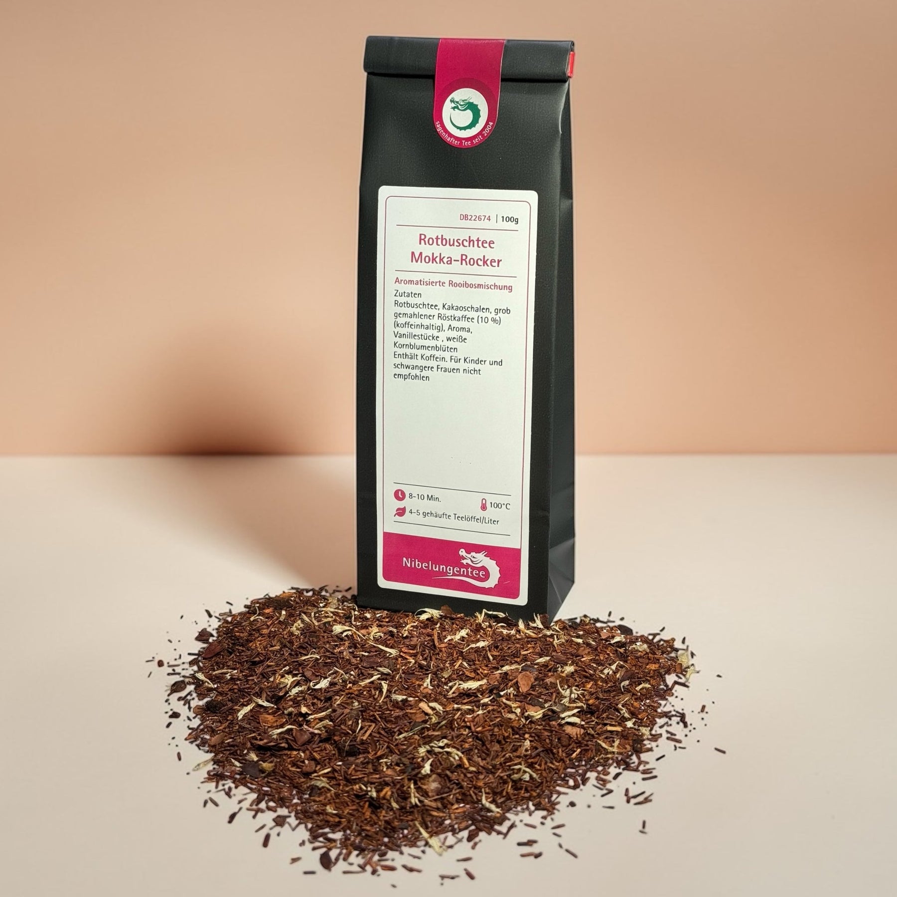 Manchmal entstehen die interessantesten Genussmomente genau dann, wenn zwei Welten zusammenkommen, die man zunächst gar nicht unbedingt miteinander verbindet. Bei dieser aromatisierten Rotbuschmischung verschmelzen die gemütliche Milde eines klassischen Rooibos mit der tiefen, leicht herben Note von geröstetem Kaffee. Das Ergebnis ist ein Charakter, der sowohl vertraut als auch überraschend wirkt.