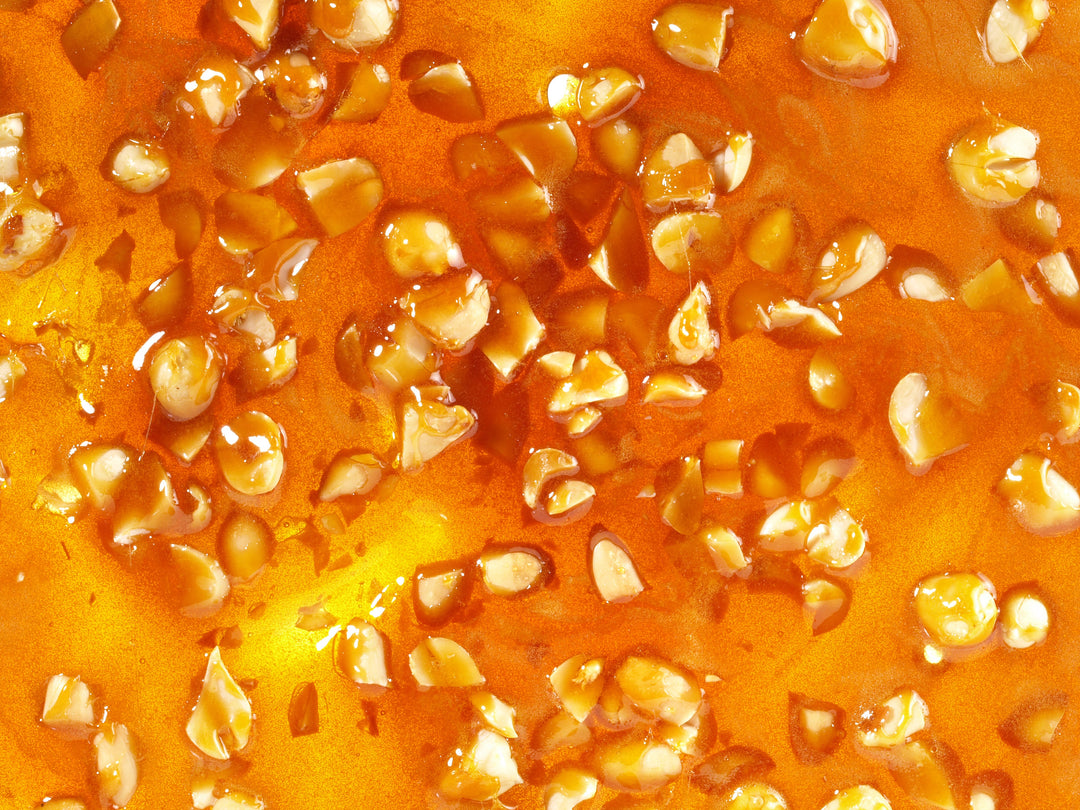 Krokantstücke geben der Teesorte eine köstliche karamellige Süße und eine knusprige Textur, die für ein einzigartiges Geschmackserlebnis sorgt. Ihre nussigen und gerösteten Noten harmonieren perfekt mit fruchtigen oder schokoladigen Zutaten und schaffen eine ausgewogene Mischung aus Süße und Tiefe. Durch ihre charakteristische Konsistenz bringen sie zudem eine interessante Textur in den Tee, die jeden Schluck zu einem kleinen Genussmoment macht.