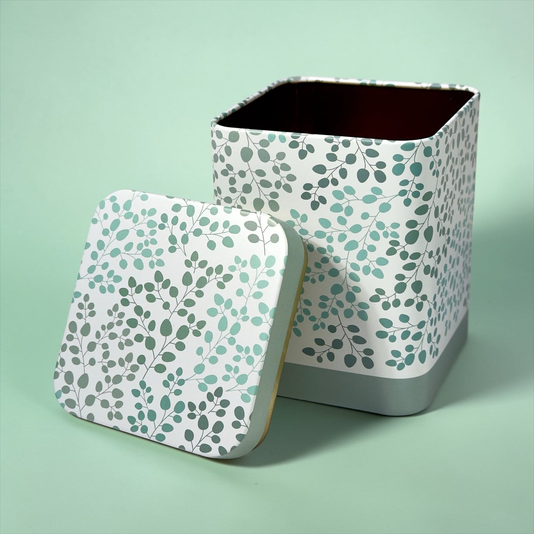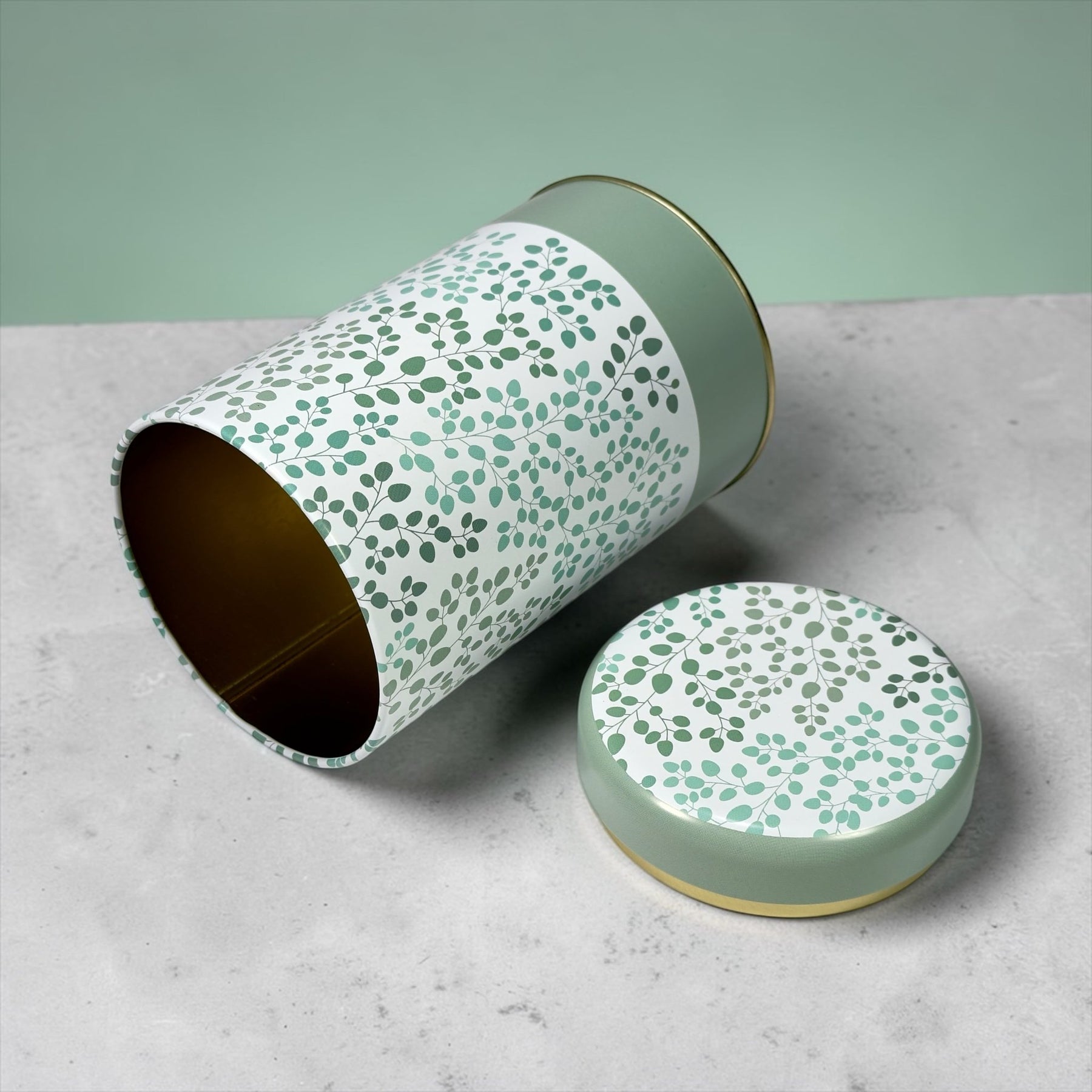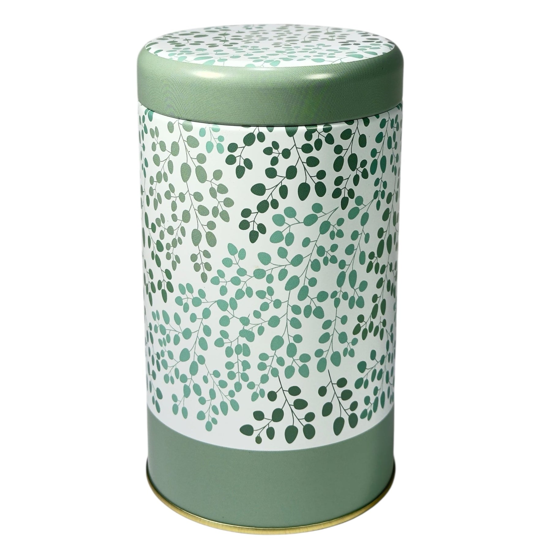 Manchmal sind es die leisen Töne, die einen Raum besonders stimmig wirken lassen. Genau dieses Gefühl vermittelt die Teedose Milea auf den ersten Blick. Zarte Blätter in soften Pastellnuancen ziehen sich über die Oberfläche und werden von einem eukalyptusfarbenen Sockel sowie einem farblich abgestimmten Deckelrand eingerahmt. Das Zusammenspiel wirkt ruhig, leicht und wunderbar harmonisch.