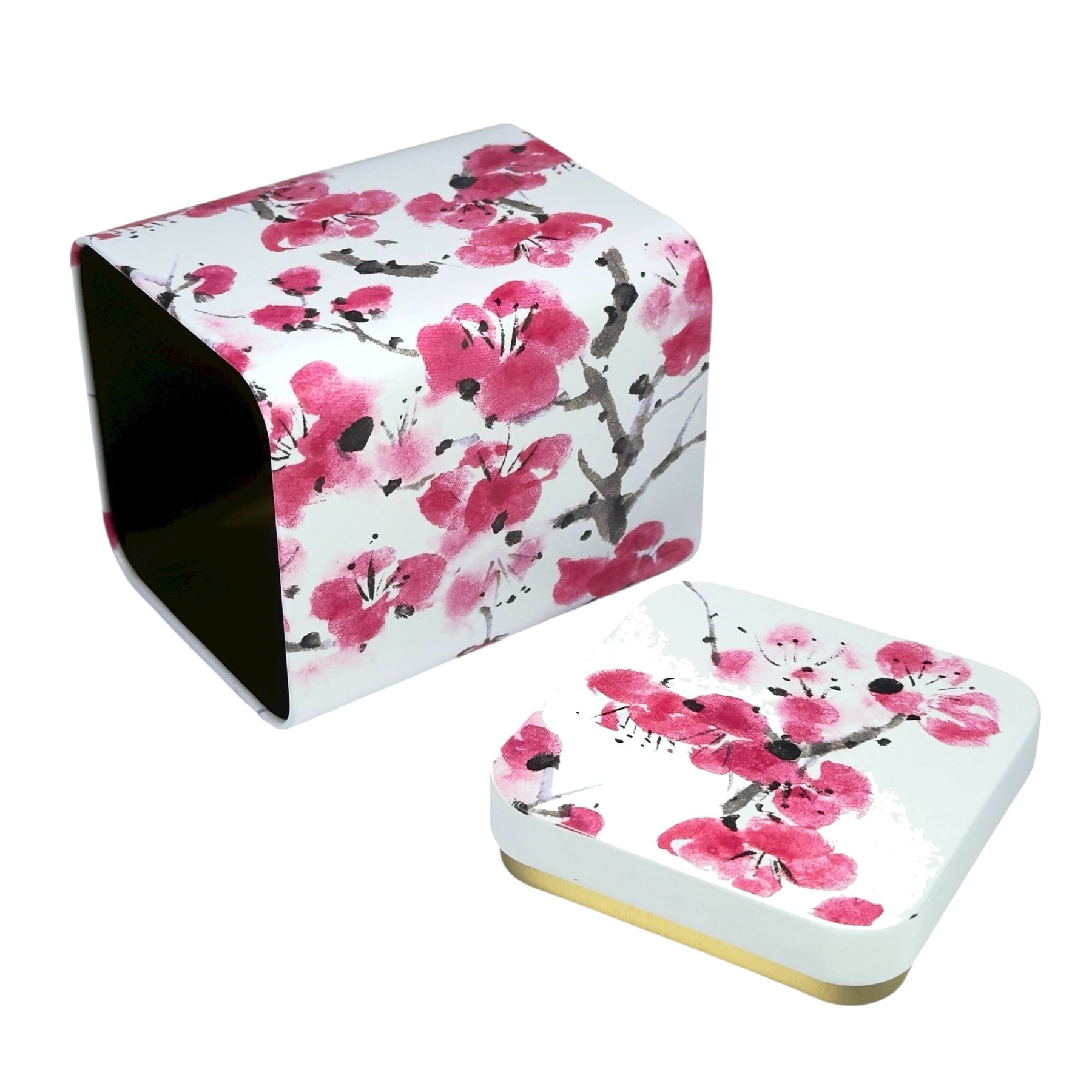Die Weißblechdose präsentiert das Sakura-Motiv auf besonders ansprechende Weise. Ein sorgfältig gezeichneter Kirschbaumzweig trägt die üppige Blütenpracht, deren Farben im lasierenden, samtigen Wasserfarbenstil einen leichten, abstrakten Charakter erhalten. Dadurch entsteht ein künstlerischer Touch, der die Schönheit der Natur mit einer subtilen Tiefe verbindet. Das Motiv wirkt so lebendig, dass es fast so scheint, als könne man die Blüten im Sonnenlicht leicht bewegen sehen.